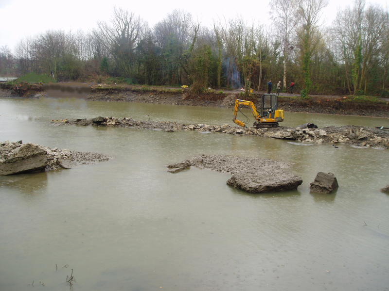 Most of the concrete was removed and the island was made into the gravel bar.